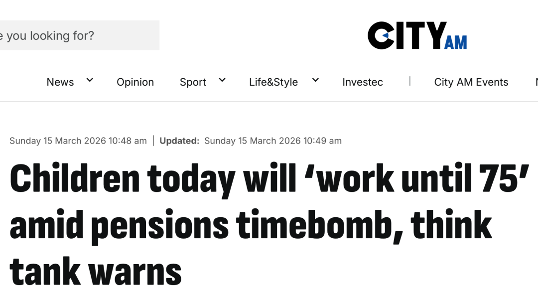 ● 智库警告:生育率下降导致养老金面临巨大缺口,英国新一代或到75岁才能退休